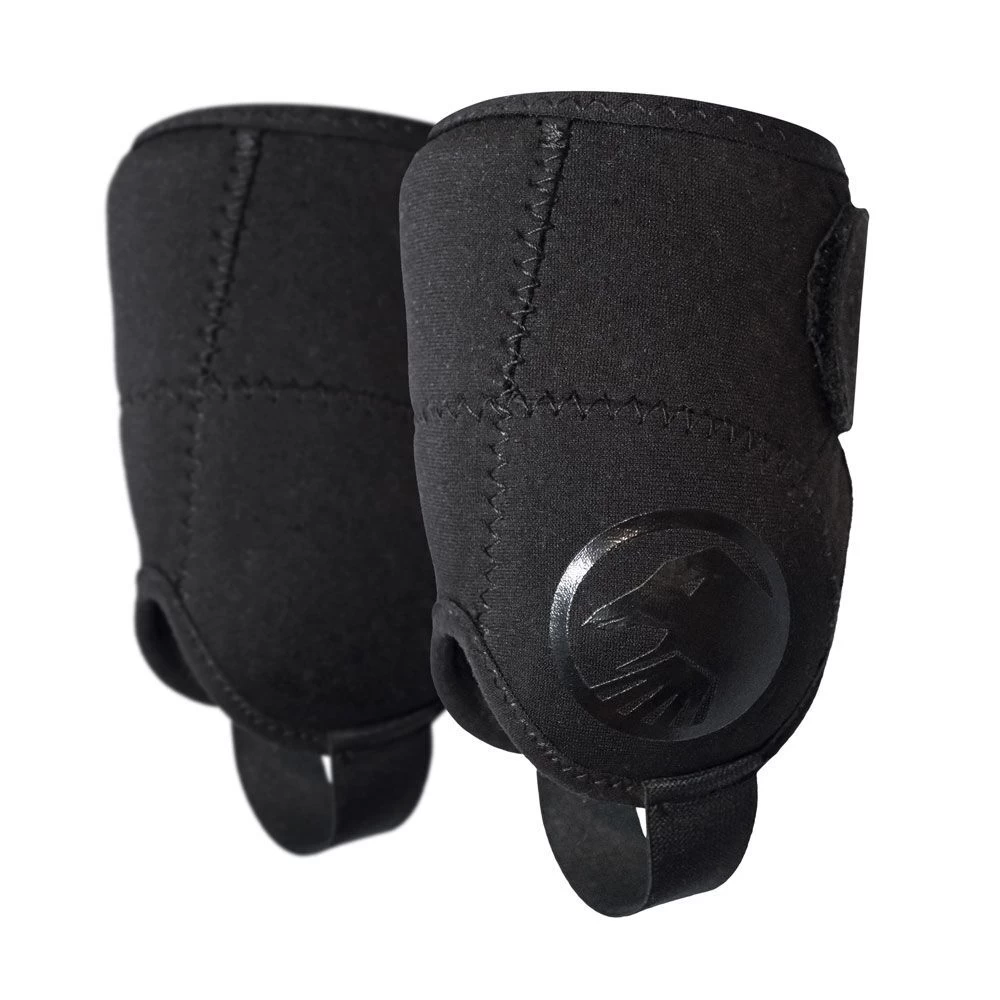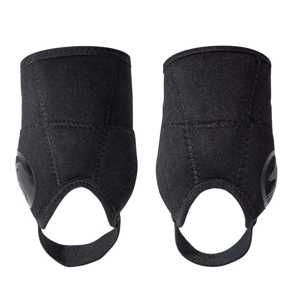 Neoprene construction Heavy duty hook and loop closures Heavy duty nylon foot strap High density EVA foam at ankle and Achilles Lightweight impact resistant ABS bone shield at ankle Weight: 2.9 oz. / 82g (pair) One Size Fits Most Colors: Black